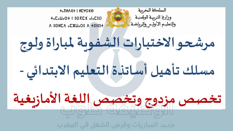 مرشحو الاختبارات الشفوية لمباراة ولوج مسلك تأهيل أساتذة التعليم الابتدائي – تخصص مزدوج وتخصص اللغة الأمازيغية بالمراكز الجهوية لمهن التربية والتكوين (442 منصب)